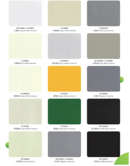 Wir bieten unseren Kunden hochwertige Pulverbeschichtungen und verbessern ständig die Qualität unserer Produkte sowie die Entwicklungstechnologie. Neben einem wählbaren Lagerbestand bieten wir auch Dienstleistungen wie Farbprüfung, technische Analyse, Anwendungsempfehlungen und Nachverkaufsdienstleistungen für jedes Produkt an. Wir glauben, dass Pulverbeschichtungen durch kontinuierliche Innovation, Forschung und Entwicklung schließlich die meisten Flüssigbeschichtungen ersetzen werden. Gleichzeitig können Pulver das Ziel von Stabilität, Schönheit und Umweltschutz erreichen und so zu unserer Mutter Erde beitragen.